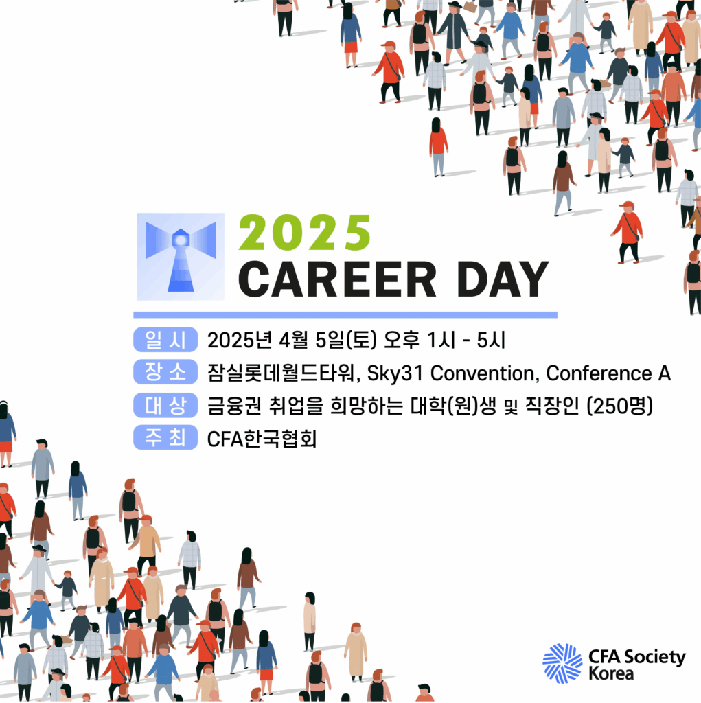 본 행사를 통해 CFA한국협회는 금융권 취업 준비에 필요한 유용한 정보를 제공하는 것은 물론, CFA Charterholder가 되기까지의 로드맵과 성공적인 금융 커리어를 설계하기 위한 인사이트를 함께 공유합니다.